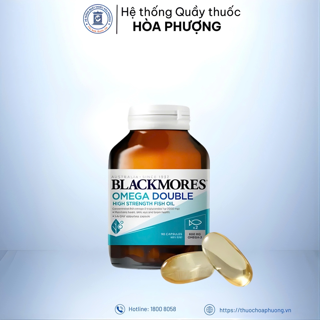 Viên Uống Dầu Cá Hỗ Trợ Sức Khỏe Cho Tim Mạch Omega Double High Strength Fish Oil là sản phẩm viên uống dầu cá cô đặc chất lượng cao đến từ thương hiệu thực phẩm chức năng Blackmores nổi tiếng của Úc, cung cấp hàm lượng gấp đôi Omega-3 trên mỗi viên nang so với viên uống dầu cá tiêu chuẩn của Blackmores*.
