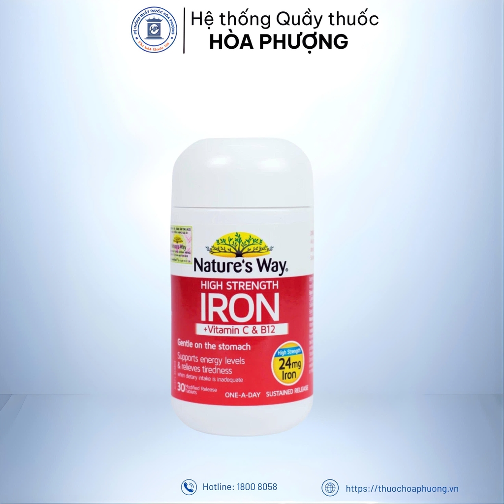 Viên High Strength Iron + Vitamin C&B12 của Nature’s Way với công thức bổ sung sắt (II) Glycinate (Sắt Bisglycinate) tức sắt hữu cơ với hàm lượng cực cao lên đến 87.66mg (tương đương 24mg sắt nguyên tố). Điều này mang đến nguồn bổ sung sắt mát cho cơ thể, không còn lo sợ gặp tình trạng nóng trong, nuổi mụn nhọt, táo bón...vốn thường gặp do uống sắt.