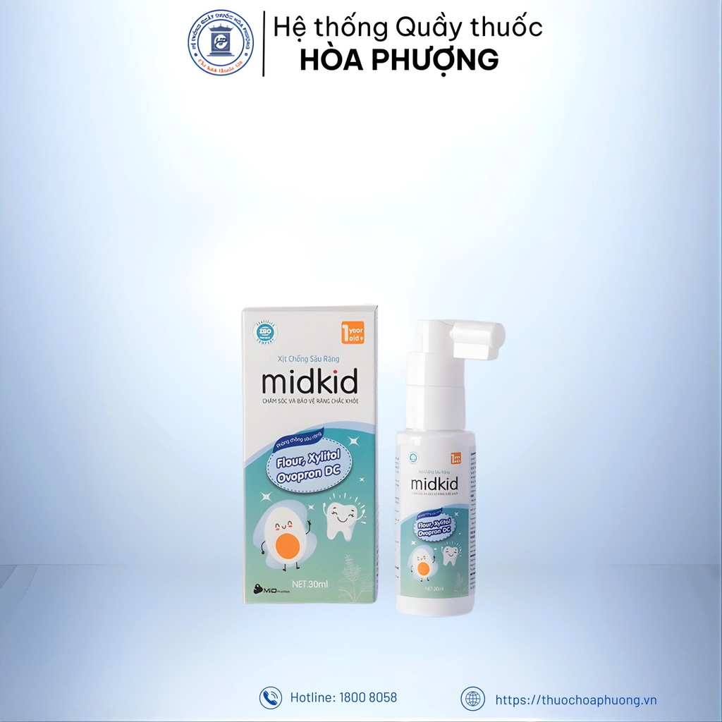 Xịt chống sâu răng Midkid 30ml có tác diệt khuẩn, ức chế vi khuẩn sâu răng phát triển, giảm mảng bám dư thừa, tái tạo men răng,...chắc chắn sẽ là lựa chọn tuyệt vời, giải pháp hoàn hảo giúp mẹ chăm sóc răng miệng bé yêu hiệu quả và dễ dàng.